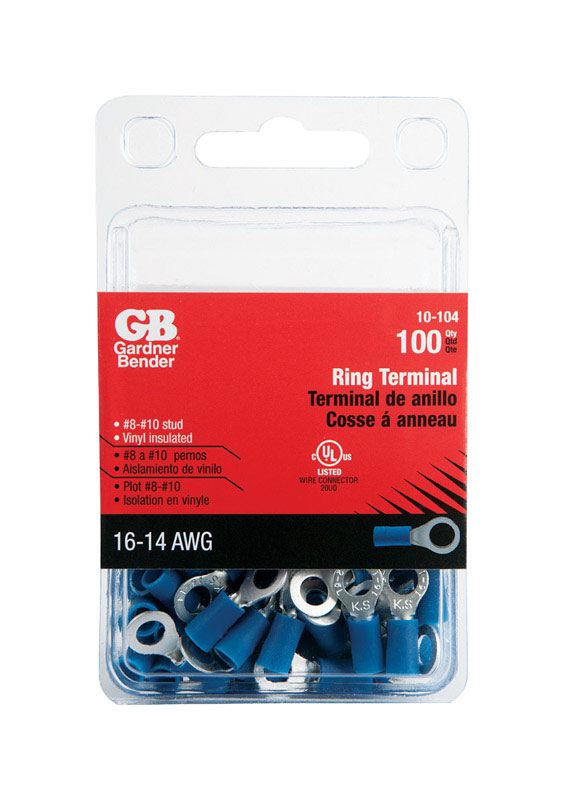 GB 16-14 Ga. Insulated Wire Ring Terminal Blue 100 pk