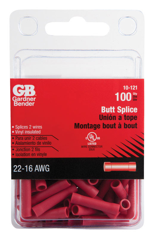GB 22-16 Ga. Insulated Wire Butt Splice Red 100 pk