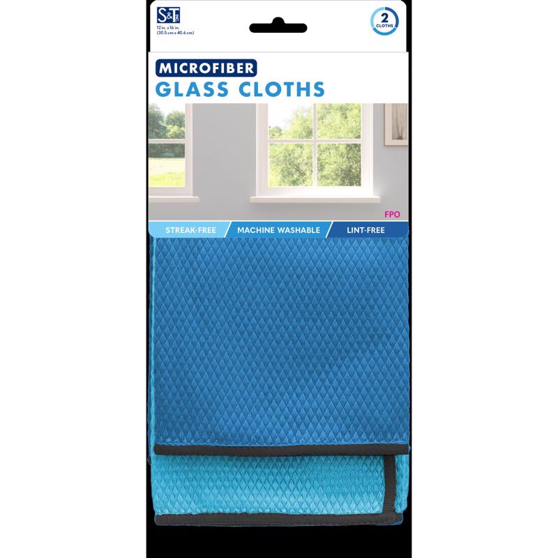 S&T MICROFIBER GLASS CLOTHS 2-PK
