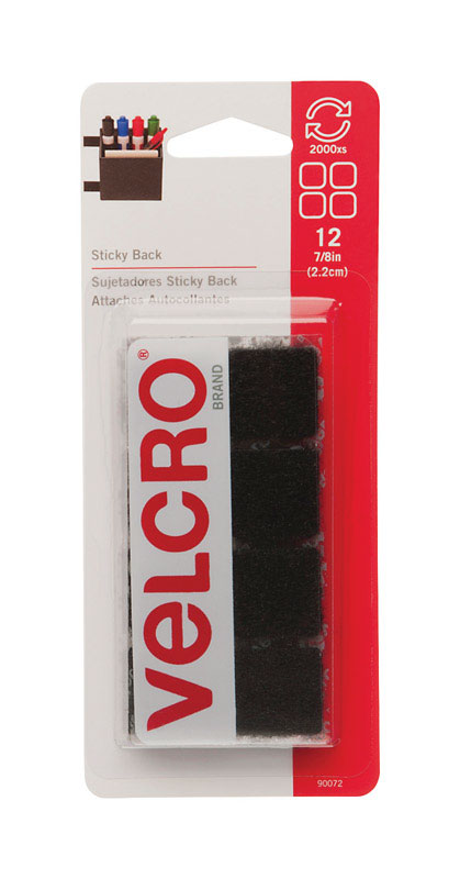 7/8" VELCRO SQUARES BLACK 12/PK