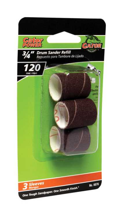 Gator 3/4 in. Dia. x 3/4 in. L Aluminum Oxide Abrasive Sleeve Refill 120 Grit Fine 3 pc