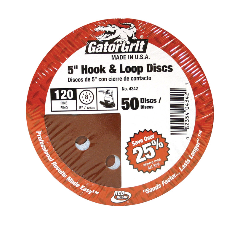 GATOR 5" 120 GRIT HOOK & LOOP DISCS 50-PK