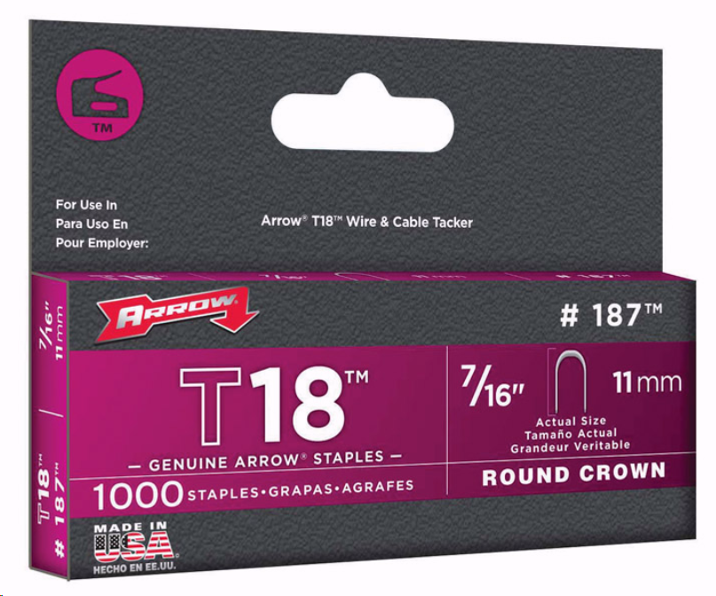 Arrow T18 3/16 in. W X 7/16 in. L 18 Ga. Round Crown Wire Staples 1000 pk
