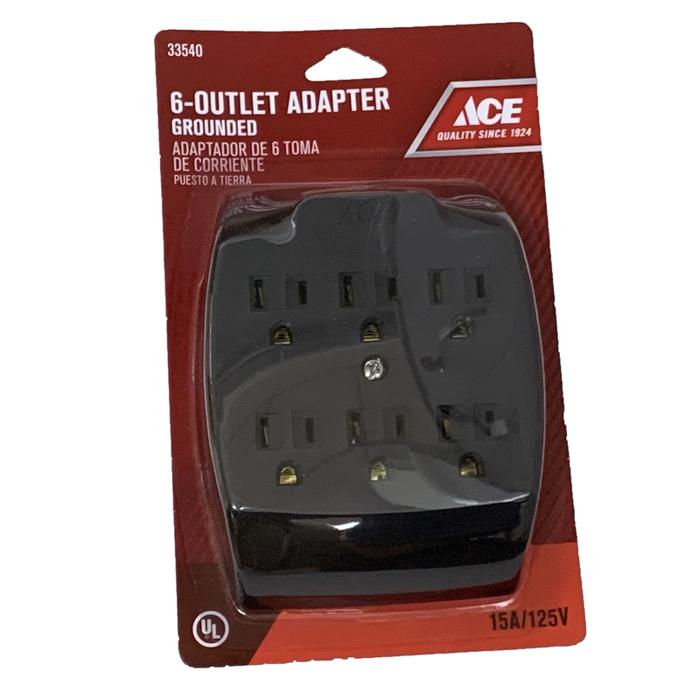 ACE 6-OUTLET GROUNDED WALL ADAPTER BROWN