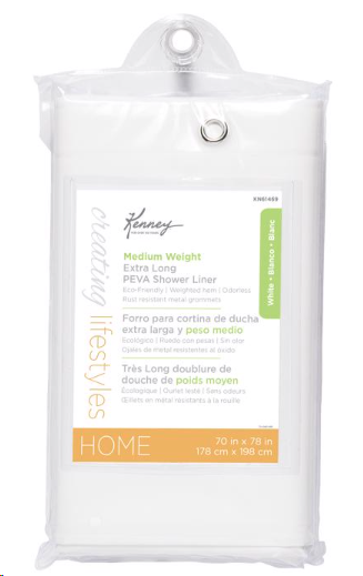 KENNEY WHITE 70"x78" PEVA SHOWER LINER