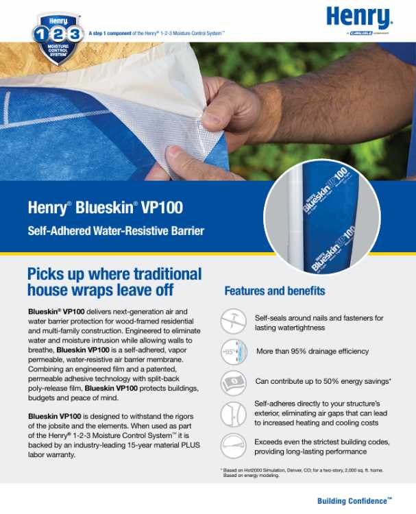 BLUESKIN VP 100 WEATHER RESISTANT BARRIER 48" X 100 *SIDEWALL ONLY*