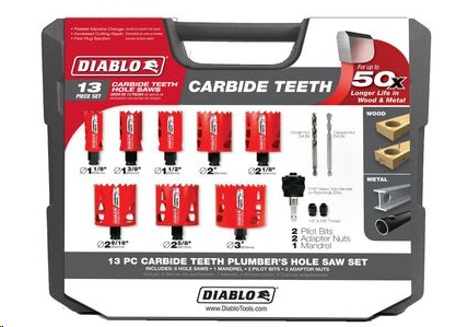 13 pc Carbide Teeth Hole Saw Set for Plumbers