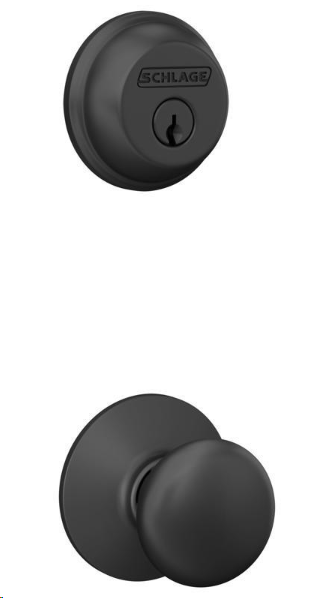 SCHLAGE PLYMOUTH MATTE BLACK ENTRY KNOB & DEADBOLT