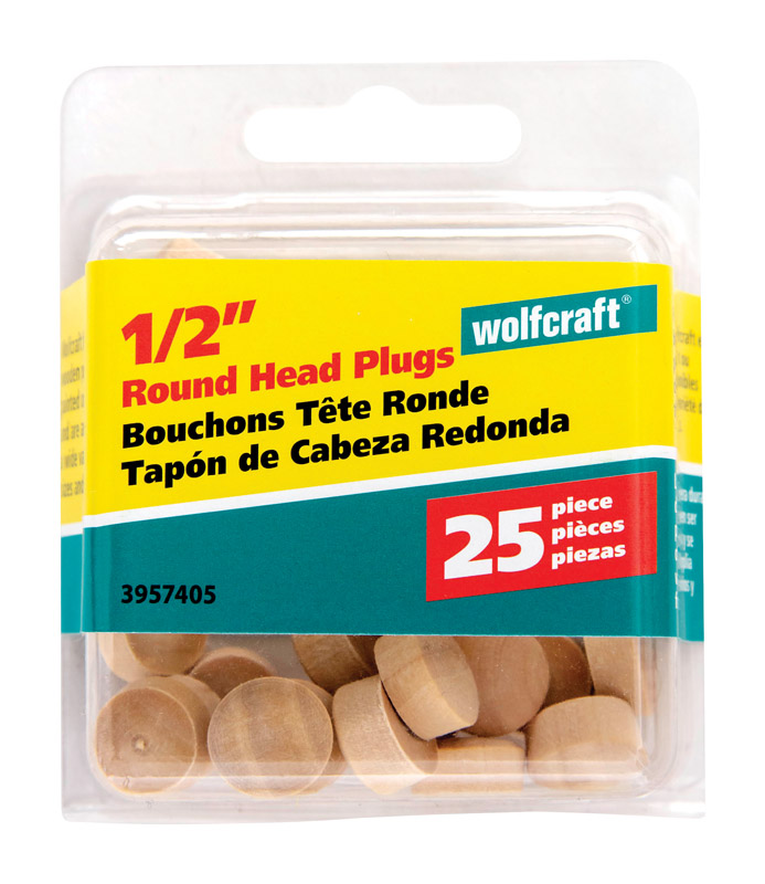 Wolfcraft Round Hardwood Head Plug 1/2" 25pk Natural