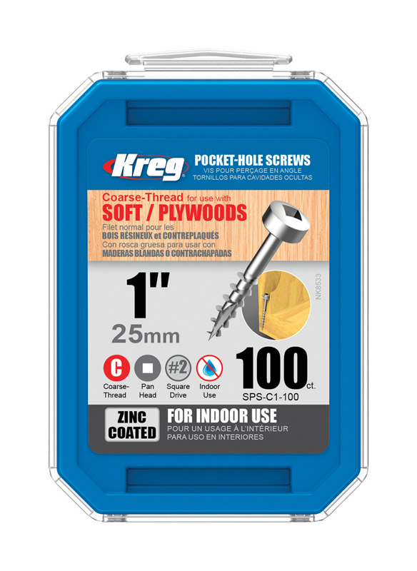 KREG 1" #7 PAN-HEAD POCKET HOLE SCREW 100/PK SPS-C1-100